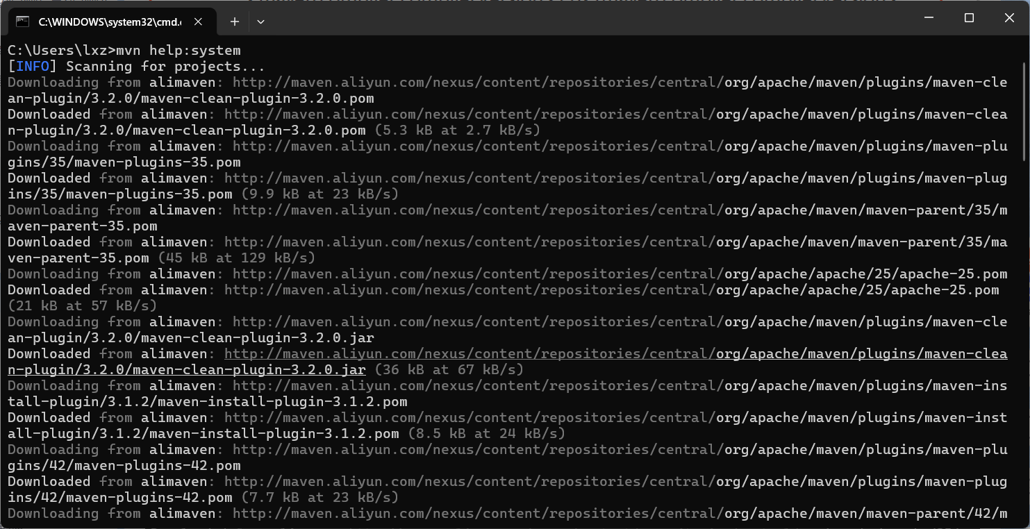 下载完成后,mvn help:system 命令会打印出所有的Java系统属性和环境变量