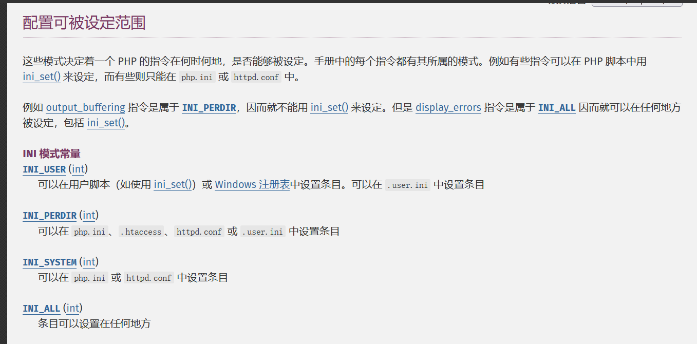 可以看到.htaccess只能用于PHP_INI_ALL或PHP_INI_PERDIR类型的指令。