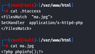 在设有黑名单的文件上传中,如果没有过滤.htaccess,我们可以通过上传.htaccess文件将图片作为php文件解析