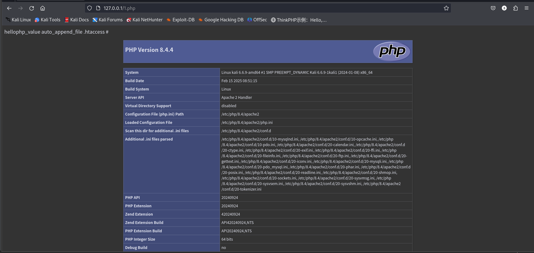 可通过php_value指令设置 auto_prepend_file或者 auto_append_file 配置选项包含一些敏感文件,但需要本目录或者子目录有可执行的php文件: