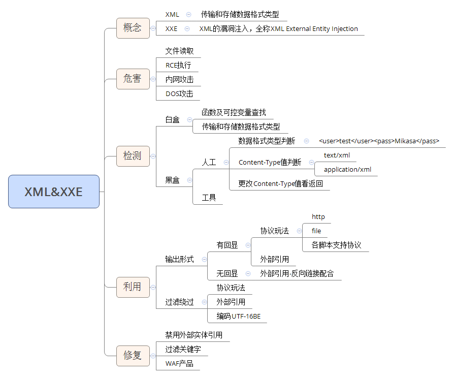 XXE(XML External Entity)是指xml外部实体攻击漏洞。XML外部实体攻击是针对解析XML输入的应用程序的一种攻击。当包含对外部实体的引用的XML输入被弱配置XML解析器处理时,就会发生这种攻击。这种攻击通过构造恶意内容,可导致读取任意文件、执行系统命令、探测内网端口、攻击内网网站等危害。