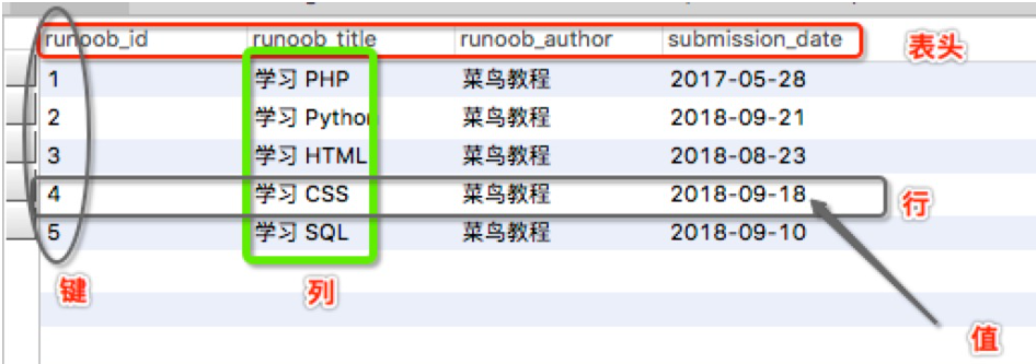 • (value): 行的具体信息, 每个值必须与该列的数据类型相同。