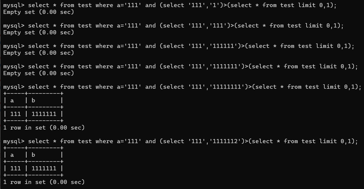 其中1=让函数结果与 1 进行比较,从而强制执行函数并触发错误。